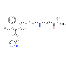 Chemical Name: (2E)-4-[(2-{4-[(1E)-1-(1H-indazol-5-yl)-2-phenylbut-1-en-1-yl]phenoxy}ethyl)amino]-N,N-dimethylbut-2-enamide
