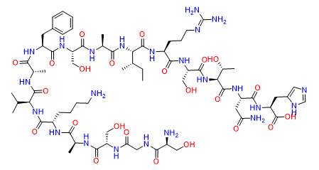 Chemical Name: (2S)-2-[(2S)-2-[(2S,3R)-2-[(2S)-2-[(2S)-2-[(2S,3S)-2-[(2S)-2-[(2S)-2-[(2S)-2-[(2S)-2-[(2S)-2-[(2S)-6-amino-2-[(2S)-2-[(2S)-2-{2-[(2S)-2-amino-3-hydroxypropanamido]acetamido}-3-hydroxypropanamido]propanamido]hexanamido]-3-methylbutanamido]propanamido]-3-phenylpropanamido]-3-hydroxypropanamido]propanamido]-3-methylpentanamido]-5-[(diaminomethylidene)amino]pentanamido]-3-hydroxypropanamido]-3-hydroxybutanamido]-3-carbamoylpropanamido]-3-(1H-imidazol-5-yl)propanoic acid