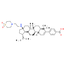 Smiles: CC1(C)[C@@H]2CC[C@]3(C)[C@H](CC[C@@H]4[C@H]5[C@@H](CC[C@@]5(CC[C@@]34C)NCCN3CCS(=O)(=O)CC3)C(C)=C)[C@@]2(C)CC=C1C1C=CC(=CC=1)C(O)=O