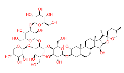 Smiles: C[C@H]1CO[C@]2(CC1)O[C@@H]1[C@H]([C@@H]2C)[C@@]2(C)CC[C@H]3[C@@H](CC[C@H]4C[C@@H](O[C@@H]5O[C@H](CO)[C@H](O[C@@H]6O[C@H](CO)[C@@H](O)[C@H](O[C@@H]7OC[C@@H](O)[C@H](O)[C@H]7O)[C@H]6O[C@@H]6O[C@H](CO)[C@H](O)[C@H](O[C@@H]7O[C@H](CO)[C@@H](O)[C@H](O)[C@H]7O)[C@H]6O)[C@H](O)[C@H]5O)[C@H](O)C[C@@]43C)[C@@H]2[C@@H]1O