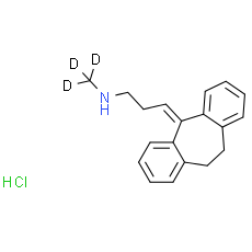 Nortriptyline-d3 (Desmethylamitriptyline-d3) hydrochloride is the deuterium labeled Nortriptyline hydrochloride. Nortriptyline hydrochloride (Desmethylamitriptyline hydrochloride) is a tricyclic antidepressant and the main active metabolite of Amitriptyline, and used to relieve the symptoms of depression.