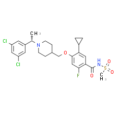 Chemical Name: 5-cyclopropyl-4-({1-[(1S)-1-(3,5-dichlorophenyl)ethyl]piperidin-4-yl}methoxy)-2-fluoro-N-methanesulfonylbenzamide