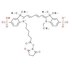 Chemical Name: 1-{6-[(2,5-dioxopyrrolidin-1-yl)oxy]-6-oxohexyl}-2-[5-(1-ethyl-3,3-dimethyl-5-sulfonato-2,3-dihydro-1H-indol-2-ylidene)penta-1,3-dien-1-yl]-3,3-dimethyl-5-sulfo-3H-indol-1-ium
