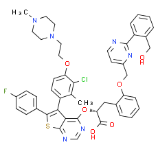 Chemical Name: (2R)-2-[(5-{3-chloro-2-methyl-4-[2-(4-methylpiperazin-1-yl)ethoxy]phenyl}-6-(4-fluorophenyl)thieno[2,3-d]pyrimidin-4-yl)oxy]-3-[2-({2-[2-(hydroxymethyl)phenyl]pyrimidin-4-yl}methoxy)phenyl]propanoic acid