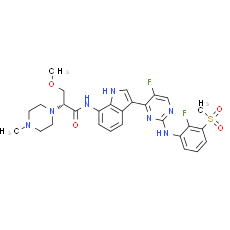 Smiles: CN1CCN(CC1)[C@H](COC)C(=O)NC1=CC=CC2=C1NC=C2C1=NC(NC2=CC=CC(=C2F)S(C)(=O)=O)=NC=C1F