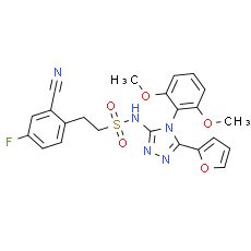 Smiles: COC1=CC=CC(OC)=C1N1C(=NN=C1NS(=O)(=O)CCC1=CC=C(F)C=C1C#N)C1=CC=CO1