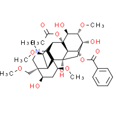 Smiles: CC(=O)O[C@]12[C@H]3[C@@H](OC(=O)C4C=CC=CC=4)[C@](O)(C[C@@]3(O)[C@]34[C@@H]5[C@@H](OC)[C@H]1C3N(C)C[C@]5(COC)[C@H](O)C[C@@H]4OC)[C@@H](OC)[C@@H]2O