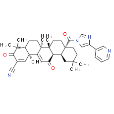 Smiles: CC1(C)C[C@H]2[C@H]3C(=O)C=C4[C@@]5(C)C=C(C#N)C(=O)C(C)(C)[C@@H]5CC[C@@]4(C)[C@]3(C)CC[C@]2(CC1)C(=O)N1C=NC(=C1)C1=CN=CC=C1