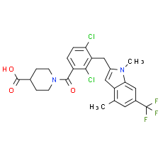 Chemical Name: 1-(2,4-dichloro-3-{[1,4-dimethyl-6-(trifluoromethyl)-1H-indol-2-yl]methyl}benzoyl)piperidine-4-carboxylic acid