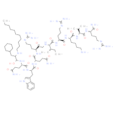 Smiles: CC(C)[C@H](NC(=O)[C@H](CCCCN)NC(=O)[C@H](CCCN=C(N)N)NC(=O)[C@@H](NCC(=O)[C@H](CCCN=C(N)N)NC(=O)[C@H](CCC(N)=O)NC(=O)[C@H](CC1=CNC2=CC=CC=C12)NC(=O)[C@H](CCC(N)=O)NC(O)C(CC1CCCCC1)NCCCCCCCCCCC)[C@@H](C)CC)C(=O)N[C@@H](CCCN=C(N)N)C(N)=O