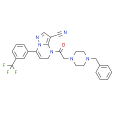Chemical Name: 4-[2-(4-benzylpiperazin-1-yl)acetyl]-7-[3-(trifluoromethyl)phenyl]-4H,5H-pyrazolo[1,5-a]pyrimidine-3-carbonitrile