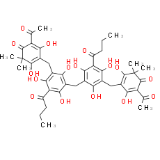 Chemical Name: 2-acetyl-4-{[3-({3-[(5-acetyl-2,6-dihydroxy-3,3-dimethyl-4-oxocyclohexa-1,5-dien-1-yl)methyl]-5-butanoyl-2,4,6-trihydroxyphenyl}methyl)-5-butanoyl-2,4,6-trihydroxyphenyl]methyl}-3,5-dihydroxy-6,6-dimethylcyclohexa-2,4-dien-1-one