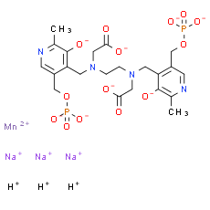 Smiles: [H+].[H+].[H+].[Na+].[Na+].[Na+].[Mn+2].CC1=NC=C(COP([O-])([O-])=O)C(CN(CC([O-])=O)CCN(CC2=C(COP([O-])([O-])=O)C=NC(C)=C2[O-])CC([O-])=O)=C1[O-]