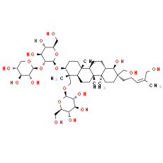 Smiles: C[C@]12CC[C@H](O[C@@H]3O[C@H](CO)[C@@H](O)[C@H](O)[C@H]3O[C@@H]3OC[C@@H](O)[C@H](O)[C@H]3O)[C@@](C)(CO[C@@H]3O[C@H](CO)[C@@H](O)[C@H](O)[C@H]3O)[C@@H]1CC[C@]1(C)[C@@H]2CC[C@@H]2[C@@H](O)[C@](CC/C=C(/C)\CO)(CC[C@@]12C)CO