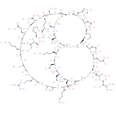 Chemical Name: (2S,3S)-2-{[(2S)-1-[(2S)-2-{[(1R,7S,10S,13S,16R,19S,22S,25S,28S,31S,34S,37S,40S,43R,46S,49S,52S,55S,58R,65S,68S,71R,78S,81R)-71-[(2S)-2-[(2S)-2-amino-3-methylbutanamido]-3-hydroxypropanamido]-28,40,55-tris(4-aminobutyl)-34-(3-carbamimidamidopropyl)-25-(2-carbamoylethyl)-49-(carbamoylmethyl)-68-(2-carboxyethyl)-10,46,52,65-tetrakis(carboxymethyl)-22-[(1R)-1-hydroxyethyl]-19-(hydroxymethyl)-13-[(1H-imidazol-4-yl)methyl]-31,37-dimethyl-2,8,11,14,17,20,23,26,29,32,35,38,41,44,47,50,53,56,64,67,70,76,79-tricosaoxo-78-(propan-2-yl)-60,61,73,74,83,84-hexathia-3,9,12,15,18,21,24,27,30,33,36,39,42,45,48,51,54,57,63,66,69,77,80-tricosaazatetracyclo[41.19.13.10¹⁶,⁵⁸.0³,⁷]pentaoctacontan-81-yl]formamido}-4-carboxybutanoyl]pyrrolidin-2-yl]formamido}-3-methylpentanoic acid