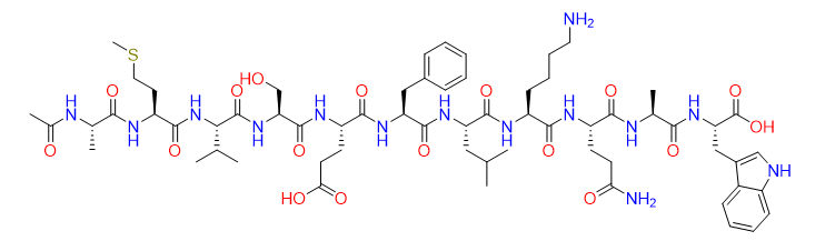 Smiles: CC(=O)N[C@@H](C)C(=O)N[C@@H](CCSC)C(=O)N[C@@H](C(C)C)C(=O)N[C@@H](CO)C(=O)N[C@@H](CCC(O)=O)C(=O)N[C@@H](CC1C=CC=CC=1)C(=O)N[C@@H](CC(C)C)C(=O)N[C@@H](CCCCN)C(=O)N[C@@H](CCC(N)=O)C(=O)N[C@@H](C)C(=O)N[C@@H](CC1=CNC2=CC=CC=C12)C(O)=O