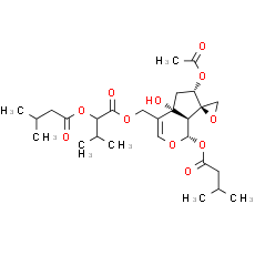 Chemical Name: [(1S,4aR,6S,7R,7aS)-6-(acetyloxy)-4a-hydroxy-1-[(3-methylbutanoyl)oxy]-4a,5,6,7a-tetrahydro-1H-spiro[cyclopenta[c]pyran-7,2'-oxiran]-4-yl]methyl 3-methyl-2-[(3-methylbutanoyl)oxy]butanoate