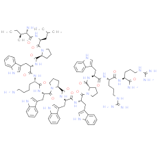 Smiles: CC(C)C[C@H](NC(=O)[C@@H](N)[C@@H](C)CC)C(=O)N1CCC[C@H]1C(=O)N[C@@H](CC1=CNC2=CC=CC=C12)C(=O)N[C@@H](CCCCN)C(=O)N[C@@H](CC1=CNC2=CC=CC=C12)C(=O)N1CCC[C@H]1C(=O)N[C@@H](CC1=CNC2=CC=CC=C12)C(=O)N[C@@H](CC1=CNC2=CC=CC=C12)C(=O)N1CCC[C@H]1C(=O)N[C@@H](CC1=CNC2=CC=CC=C12)C(=O)N[C@@H](CCCNC(N)=N)C(=O)N[C@@H](CCCNC(N)=N)C(N)=O