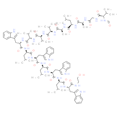 Smiles: C[C@H](NC(=O)[C@@H](CC(C)C)NC(=O)[C@H](C)NC(=O)CNC(=O)[C@@H](NC=O)C(C)C)C(=O)N[C@H](C(C)C)C(=O)N[C@@H](C(C)C)C(=O)N[C@@H](C(C)C)C(=O)N[C@@H](CC1=CNC2=CC=CC=C12)C(=O)N[C@H](CC(C)C)C(=O)N[C@@H](CC1=CNC2=CC=CC=C12)C(=O)N[C@H](CC(C)C)C(=O)N[C@@H](CC1=CNC2=CC=CC=C12)C(=O)N[C@H](CC(C)C)C(=O)N[C@@H](CC1=CNC2=CC=CC=C12)C(=O)NCCO