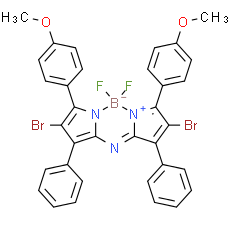 Smiles: COC1C=CC(=CC=1)C1=C(Br)C(=C2N=C3C(C4C=CC=CC=4)=C(Br)C(C4C=CC(=CC=4)OC)=[N+]3[B-](F)(F)N12)C1C=CC=CC=1