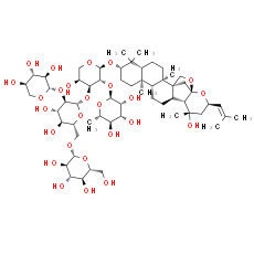 Smiles: CC1(C)[C@@H]2CC[C@]3(C)[C@H](CC[C@@H]4[C@@H]5[C@]6(C[C@@]34CO6)O[C@H](C[C@]5(C)O)C=C(C)C)[C@@]2(C)CC[C@@H]1O[C@@H]1OC[C@H](O)[C@H](O[C@@H]2O[C@H](CO[C@@H]3O[C@H](CO)[C@@H](O)[C@H](O)[C@H]3O)[C@@H](O)[C@H](O)[C@H]2O[C@@H]2OC[C@@H](O)[C@H](O)[C@H]2O)[C@H]1O[C@@H]1O[C@@H](C)[C@H](O)[C@@H](O)[C@H]1O