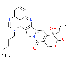 InChi: InChI=1S/C26H26N4O4/c1-3-5-6-10-29-14-27-18-8-7-9-19-21(18)23(29)15-12-30-20(22(15)28-19)11-17-16(24(30)31)13-34-25(32)26(17,33)4-2/h7-9,11,14,33H,3-6,10,12-13H2,1-2H3/t26-/m0/s1