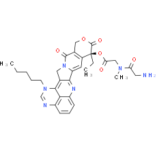 Smiles: CN(CC(=O)O[C@@]1(CC)C2C=C3C4=NC5=CC=CC6N=CN(CCCCC)C(C=65)=C4CN3C(=O)C=2COC1=O)C(=O)CN