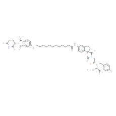 InChi: InChI=1S/C48H52F4N6O9/c1-29(48(50,51)52)56(27-30-12-14-32(49)15-13-30)41(61)28-57-45(65)47(67-46(57)66)23-22-31-25-34(17-19-37(31)47)54-39(59)11-9-7-5-3-2-4-6-8-10-24-53-33-16-18-35-36(26-33)44(64)58(43(35)63)38-20-21-40(60)55-42(38)62/h12-19,25-26,29,38,53H,2-11,20-24,27-28H2,1H3,(H,54,59)(H,55,60,62)/t29-,38?,47+/m0/s1