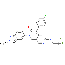 Smiles: CN1C=C2C=C(C=CC2=N1)N1C=C2C=NC(NCC(F)(F)F)=NC2=C(C1=O)C1C=CC(Cl)=CC=1