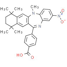 Smiles: CN1C2=CC=C(C=C2N=C(C2C=C3C(=CC1=2)C(C)(C)CCC3(C)C)C1C=CC(=CC=1)C(O)=O)[N+]([O-])=O