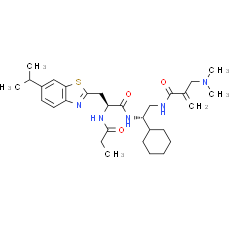 Smiles: CC(C)C1C=CC2N=C(C[C@H](NC(=O)CC)C(=O)N[C@H](CNC(=O)C(=C)CN(C)C)C3CCCCC3)SC=2C=1