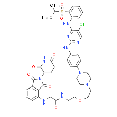 InChi: InChI=1S/C42H47ClN10O8S/c1-26(2)62(59,60)34-9-4-3-7-31(34)48-38-30(43)24-46-42(50-38)47-27-10-12-28(13-11-27)52-19-17-51(18-20-52)21-23-61-22-16-44-36(55)25-45-32-8-5-6-29-37(32)41(58)53(40(29)57)33-14-15-35(54)49-39(33)56/h3-13,24,26,33,45H,14-23,25H2,1-2H3,(H,44,55)(H,49,54,56)(H2,46,47,48,50)