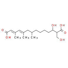 InChi: InChI=1S/C18H30O6/c1-12(8-13(2)9-14(3)10-17(21)22)6-4-5-7-16(20)15(11-19)18(23)24/h9-10,12,15-16,19-20H,4-8,11H2,1-3H3,(H,21,22)(H,23,24)/b13-9+,14-10+