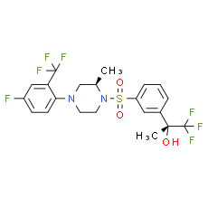 InChi: InChI=1S/C21H21F7N2O3S/c1-13-12-29(18-7-6-15(22)11-17(18)20(23,24)25)8-9-30(13)34(32,33)16-5-3-4-14(10-16)19(2,31)21(26,27)28/h3-7,10-11,13,31H,8-9,12H2,1-2H3/t13-,19-/m1/s1