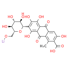 Smiles: [Li]OC[C@H]1O[C@H]([C@H](O)[C@@H](O)[C@@H]1O)C1C(O)=C2C(=C(O)C=1O)C(=O)C1=CC(O)=C(C(C)=C1C2=O)C(O)=O