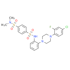 Smiles: CN(C)S(=O)(=O)C1C=CC(=CC=1)S(=O)(=O)NC1=CC=CC=C1N1CCN(CC1)C1=CC=C(Cl)C=C1F