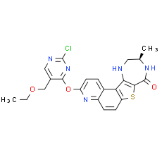 InChi: InChI=1S/C22H20ClN5O3S/c1-3-30-10-12-9-25-22(23)28-21(12)31-16-7-4-13-14(27-16)5-6-15-17(13)18-19(32-15)20(29)26-11(2)8-24-18/h4-7,9,11,24H,3,8,10H2,1-2H3,(H,26,29)/t11-/m1/s1