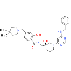 Chemical Name: N-{[(3S)-1-[6-(benzylamino)pyrimidin-4-yl]-3-hydroxypiperidin-3-yl]methyl}-4-[(4,4-dimethylpiperidin-1-yl)methyl]-2-hydroxybenzamide
